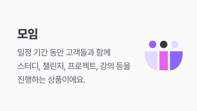 모임 상품은 크리에이터님이 원하시는 대로 운영하실 수 있어요.