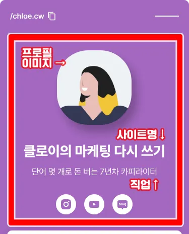 사이트명에 크리에이터 닉네임을 넣어 이름을 각인시켜주세요.