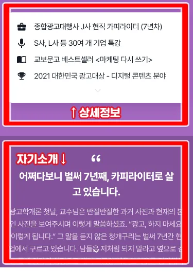 ex. 7년 차 카피라이터 → 단어 몇 개로 돈 버는 7년 차 카피라이터