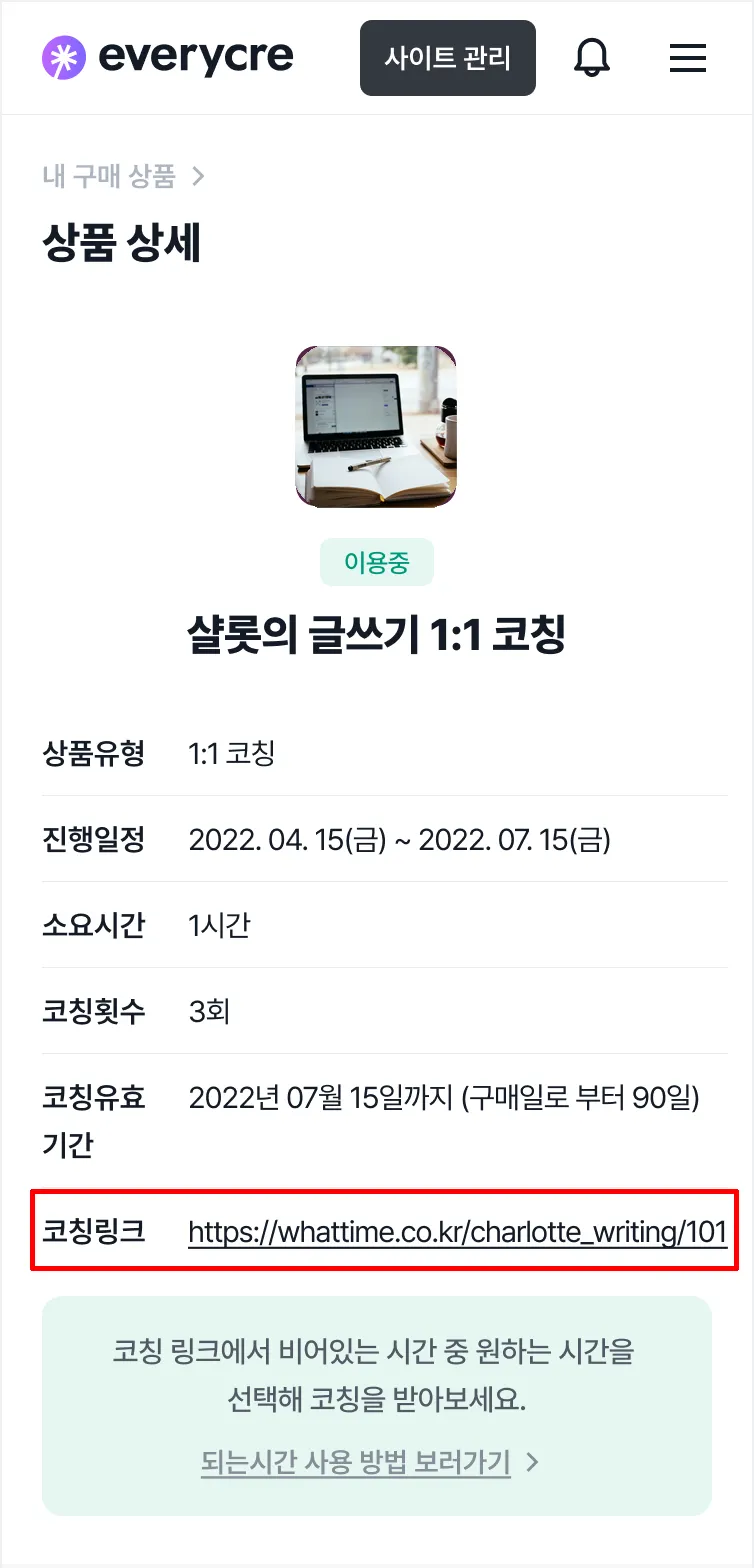 내 구매 상품에서 코칭 링크를 클릭해주세요.