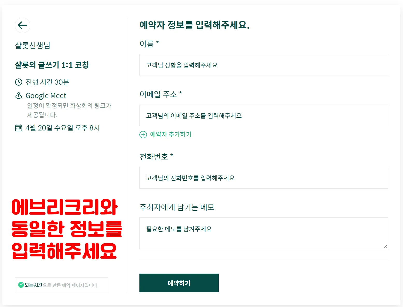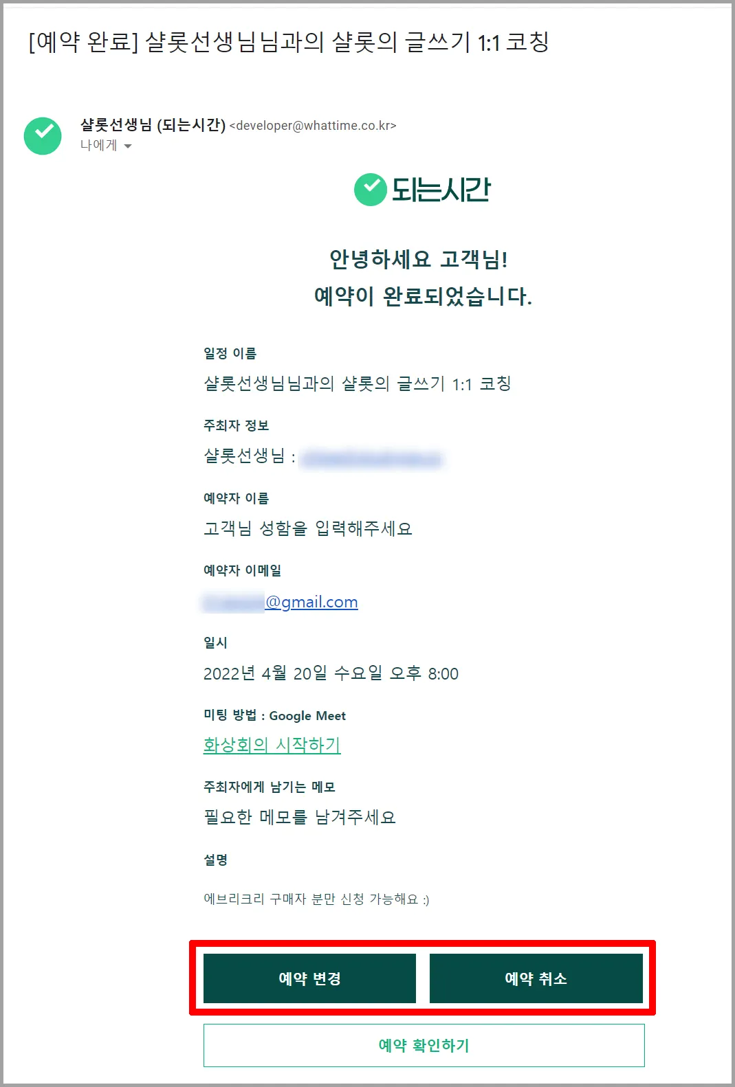 예약 확정 메일을 통해 예약 수정이 가능해요
