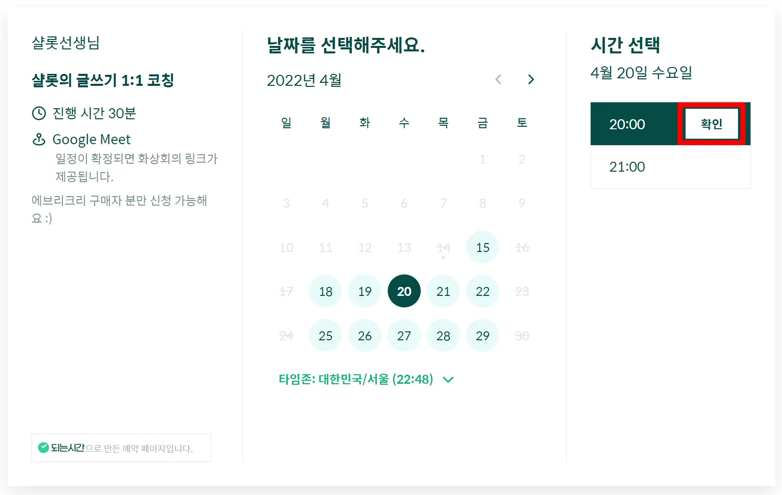 1:1 코칭은 일정 예약 서비스 되는시간 을 통해 신청할 수 있어요.
