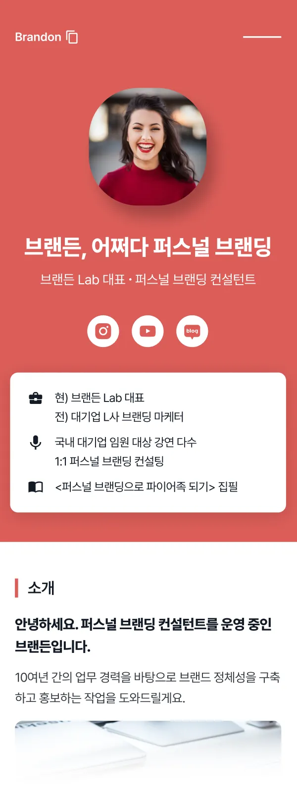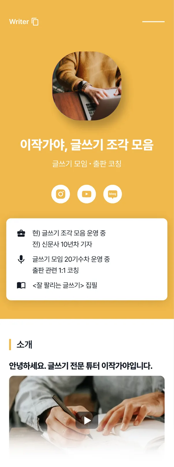 크리에이터로 활동을 하다보면 크리에이터로서 진행하는 활동이 아니라, 이 모든 활동을 직접 총괄하는 크리에이터님 본인을 소개해야할 때가 있죠.