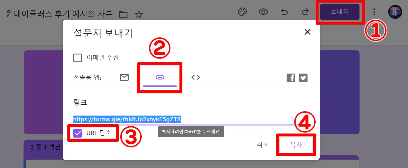 구글폼에서 후기 세팅하기